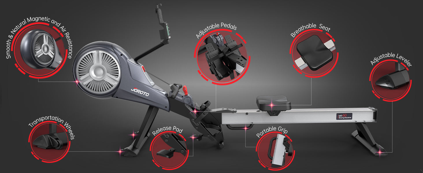 Rameur à double résistance breveté JOROTO MR60 | Air et magnétique