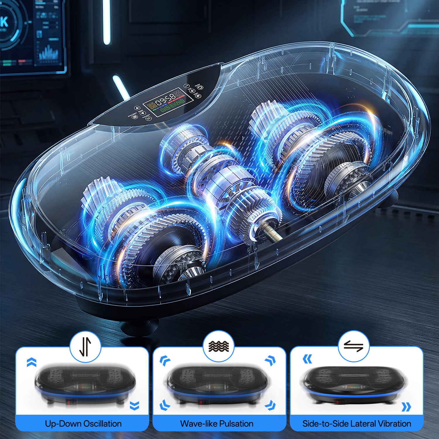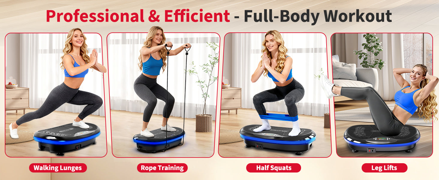 A high-output 440W triple motor system delivers strong, stable, and quiet vibration performance. Multi-directional motion includes vertical oscillation, wave-style pulses, and side-to-side vibration for full-body muscle engagement.
