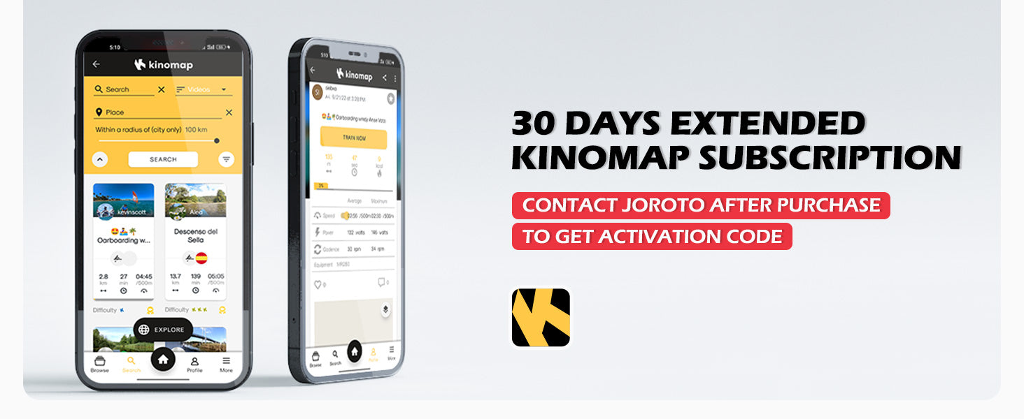 - 30 Days Extended Kinomap Subscription: Enjoy a total of 44 days of access to Kinomap’s immersive training sessions, virtual routes, and structured workouts. Simply contact JOROTO after your purchase for your activation code.