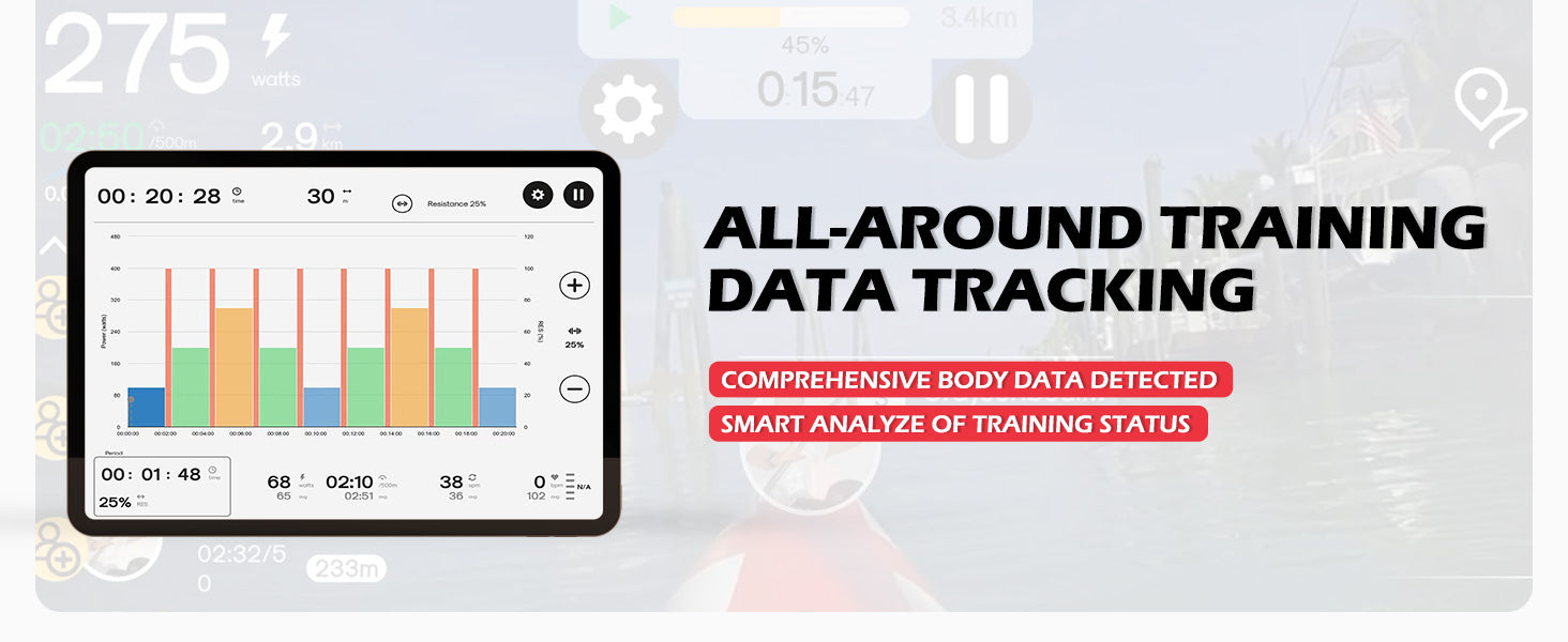 JOROTO MR26 rowing machine is equipped with a fully functional display that displays a range of important workout data, This includes SCAN/TIME/COUNT/DIST/CAL/TCN, This feature allows users to monitor their current exercise data and stay motivated throughout their workouts.