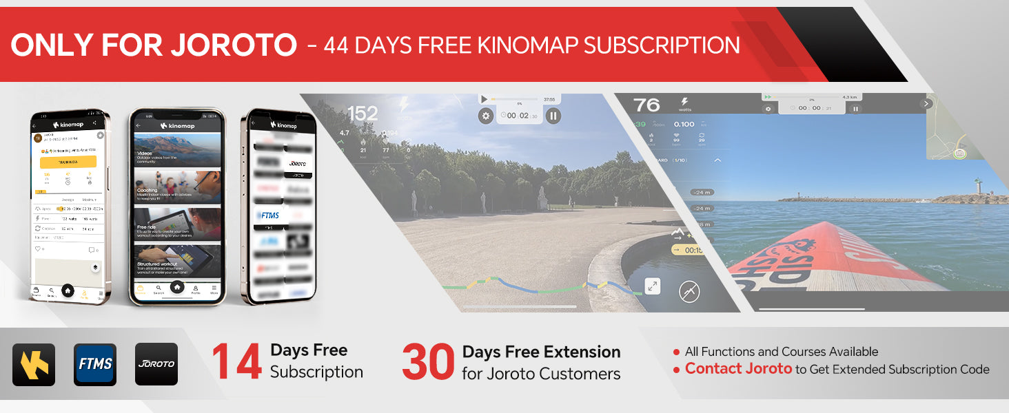 - 30 Days Extended Kinomap Subscription: Enjoy a 30-day Kinomap subscription, combined with a standard 14-day trial for a total of 44 days of access to immersive training sessions, virtual routes, and structured workouts at no additional cost.