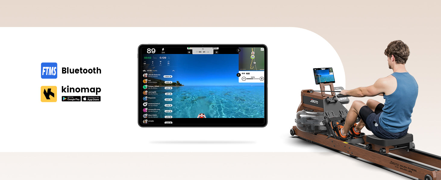 Link up with the KINOMAP APP for an engaging and fun workout, rowing through various virtual landscapes and scenarios that keep your training sessions fresh and exciting.