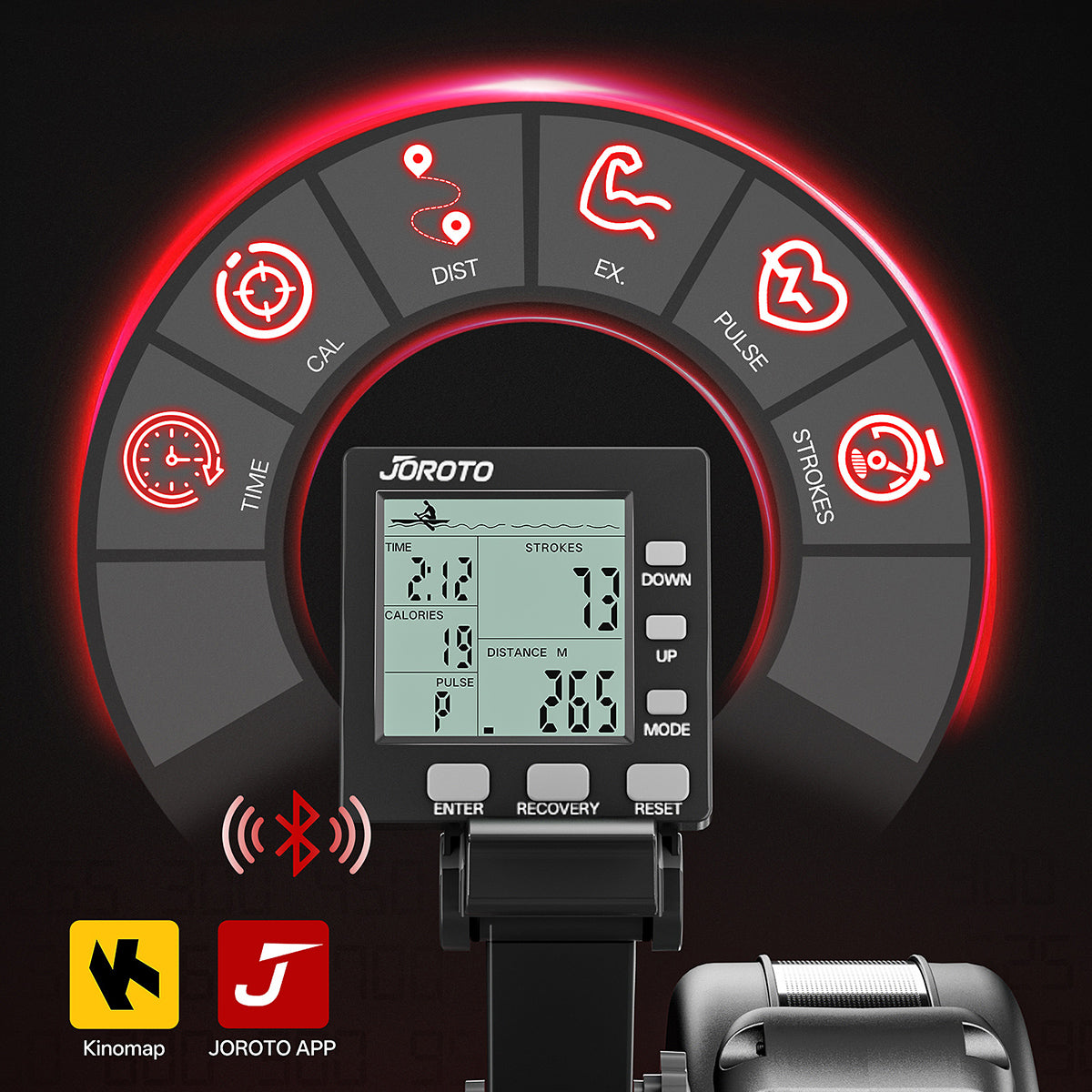 - LCD Performance Monitor with Metrics: Time, Distance, Calories, Strokes, RPM, WATT, 500m Pace